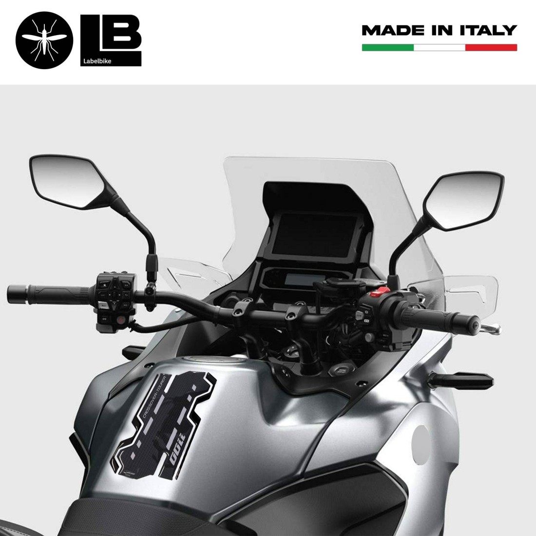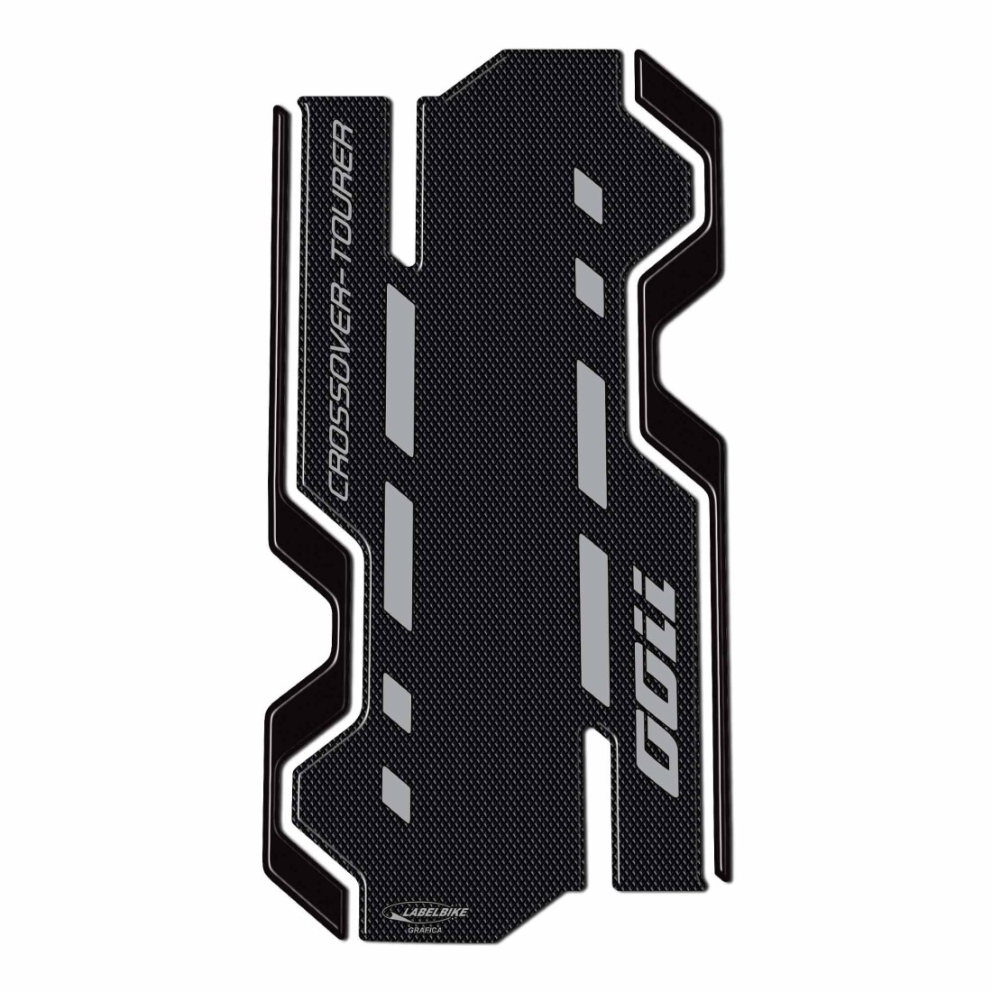 Protezione adesiva resinata proteggi serbatoio moto Honda NT 1100 dal 2022. Esclusivi - Labelbike. Adesivo paraserbatoio moto MADE IN ITALY realizzato in resina con effetto 3D. Grafica in Simil antiscivolo e Nero lucido con scritta Crossover-Tourer 1100. Protezione paraserbatoio resinato 3D per serbatoio moto Honda NT1100 2022 - 2023.