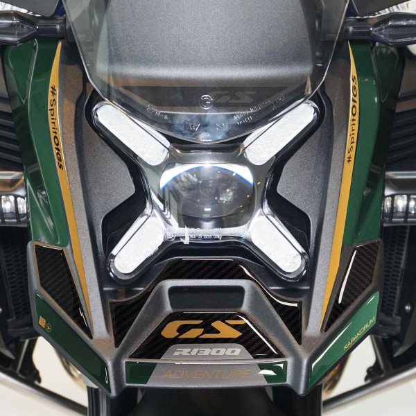 Adesivo per Frontale moto realizzatio in resina con effetto 3D. Protezione adesiva resinata gel 3D con grafica compatibile con tutte le colorazioni di moto BMW R 1300 GS Adventure dal 2024.