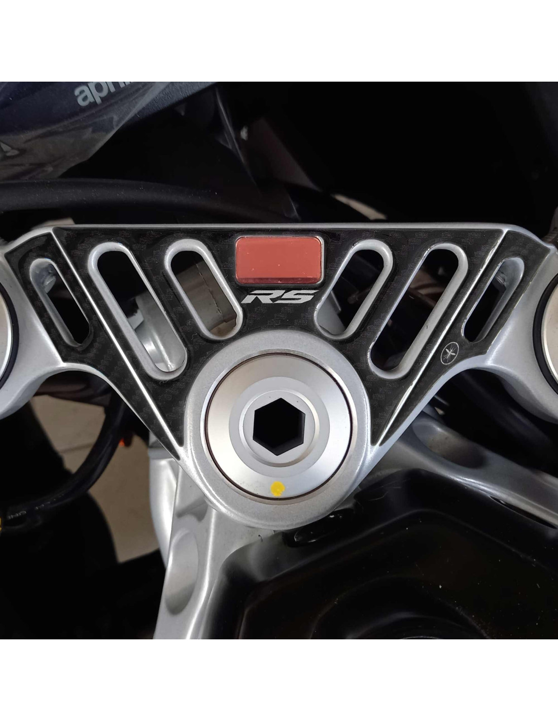 Protezione adesiva resinata per Piastra Forcella Sterzo moto Aprilia RS457 2024-2025. Adesivo in resina gel 3D Esclusivo - Labelbike®. Adesivo proteggi Piastra Sterzo ideale per Aprilia RS 457.