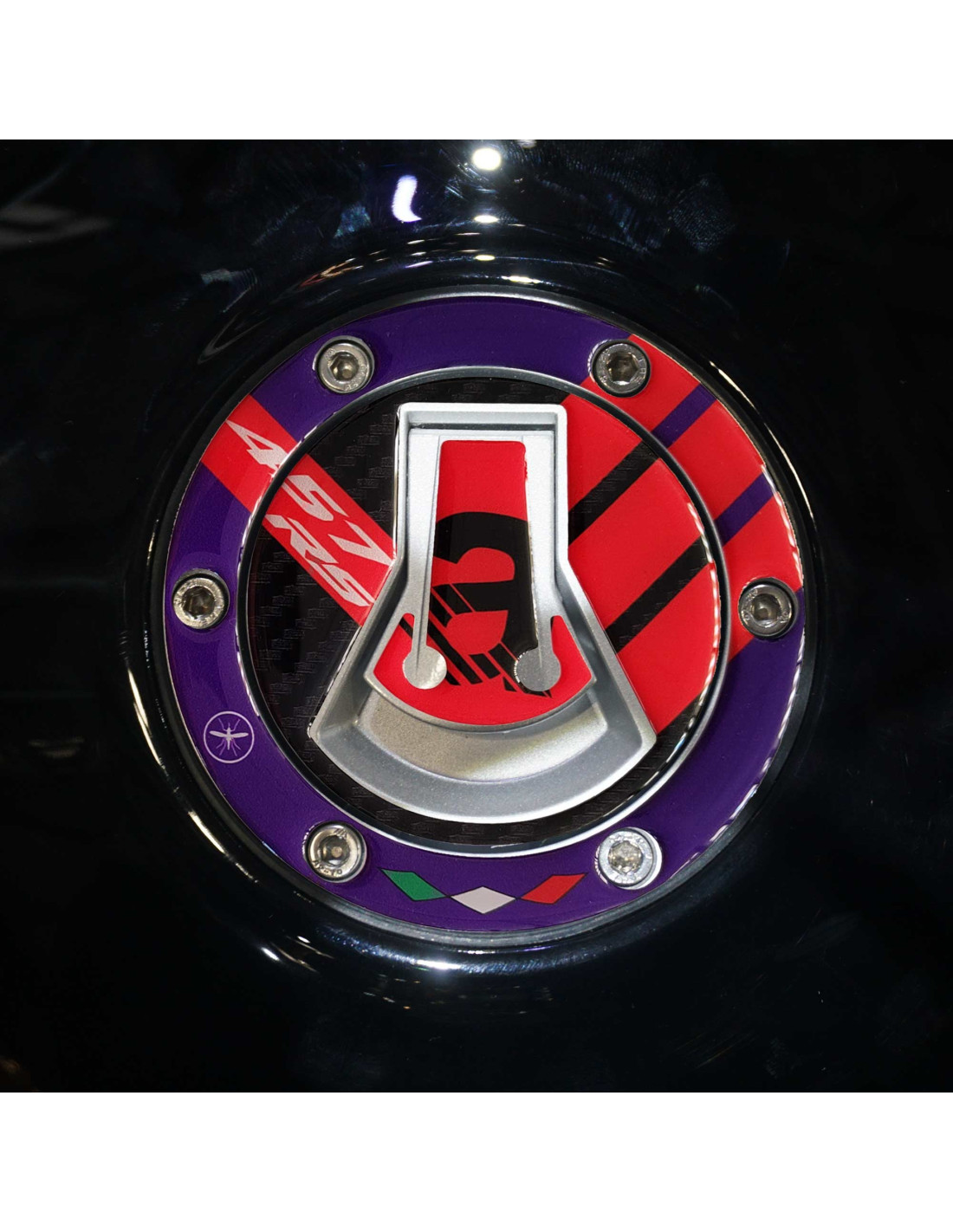 Adesivo protezione per tappo serbatoio moto realizzato in resina 3D compatibile con Aprilia RS 457 dal 2024