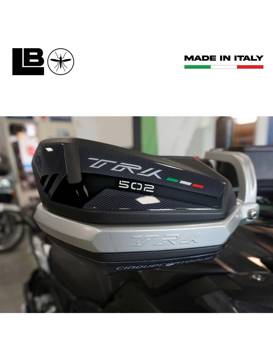 Protezioni adesive resinate per paramani moto Benelli TRK 502. Adesivi resinati gel 3D Esclusivi - Labelbike®. Adesivi proteggi paramani MADE IN ITALY realizzati in resina con effetto 3D. Grafica in due colorazioni: Bianco o Nero.