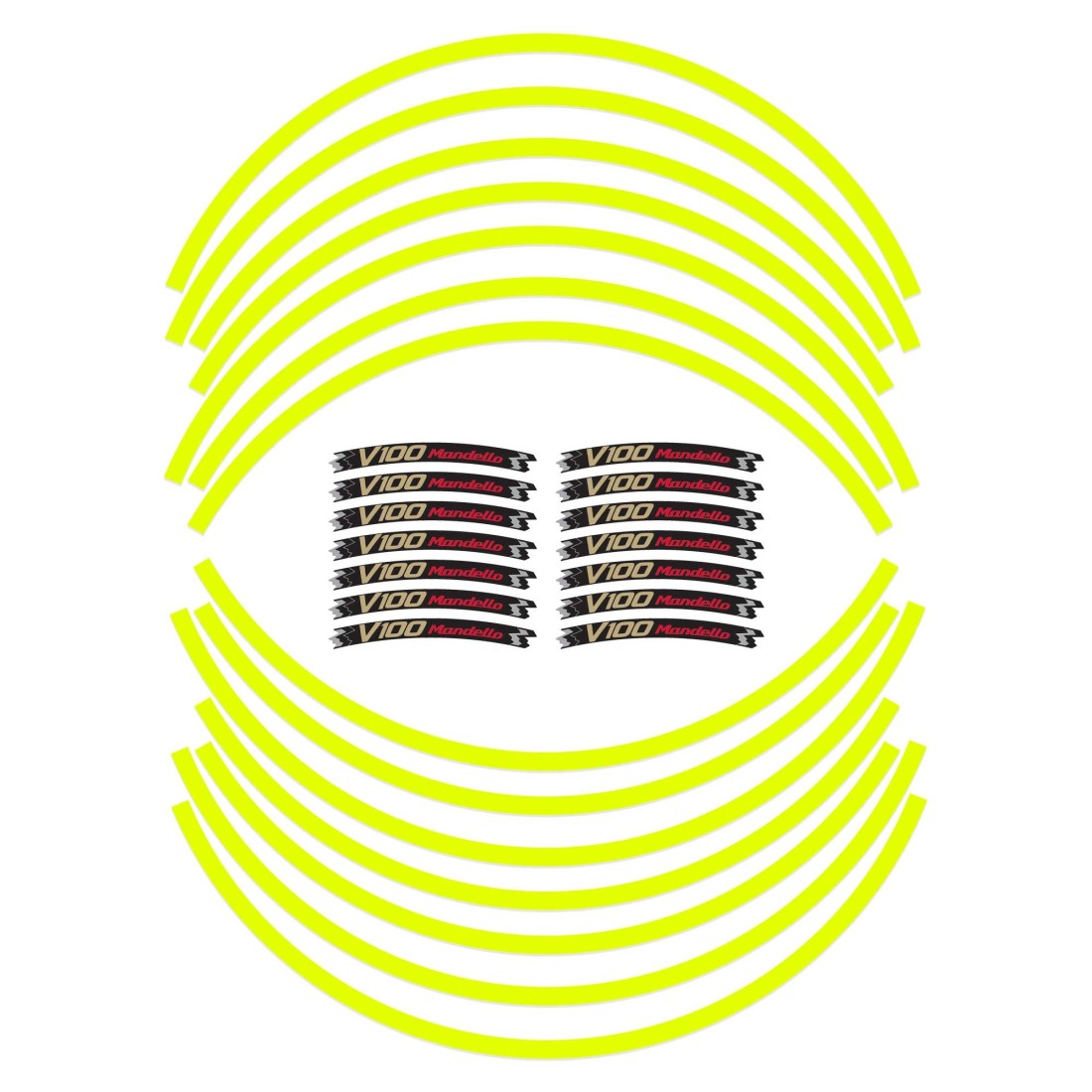 Kit di adesivi per entrambe le ruote moto, varie colorazioni disponibili - SCEGLI IL COLORE DEGLI ADESIVI - compatibili con profilo cerchi Moto Guzzi V100 Mandello