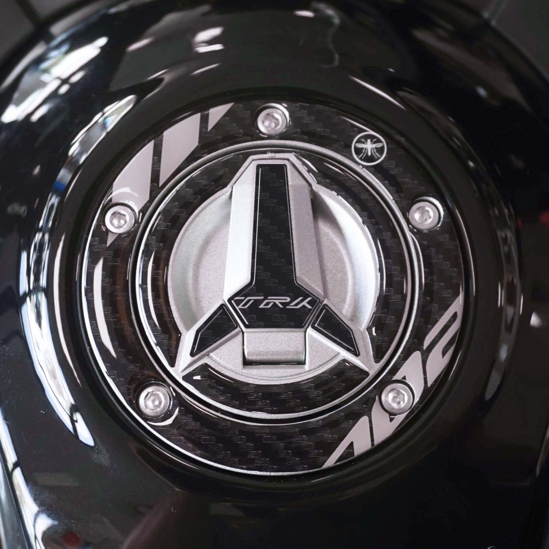 Protezione adesiva resinata per tappo benzina moto Benelli TRK 702 e 702X 2023-2025. Adesivo in resina gel 3D Esclusivo - Labelbike®. Adesivo proteggi graffi per moto MADE IN ITALY.