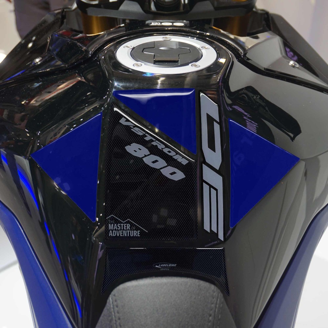 Adesivi in resina gel 3D compatibili con tutte le colorazioni (Giallo Petra; Grigio Berlino; Nero Dubai) di moto V-Strom 800DE dal 2023.