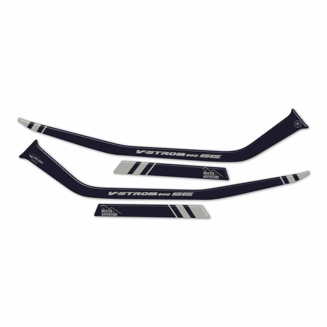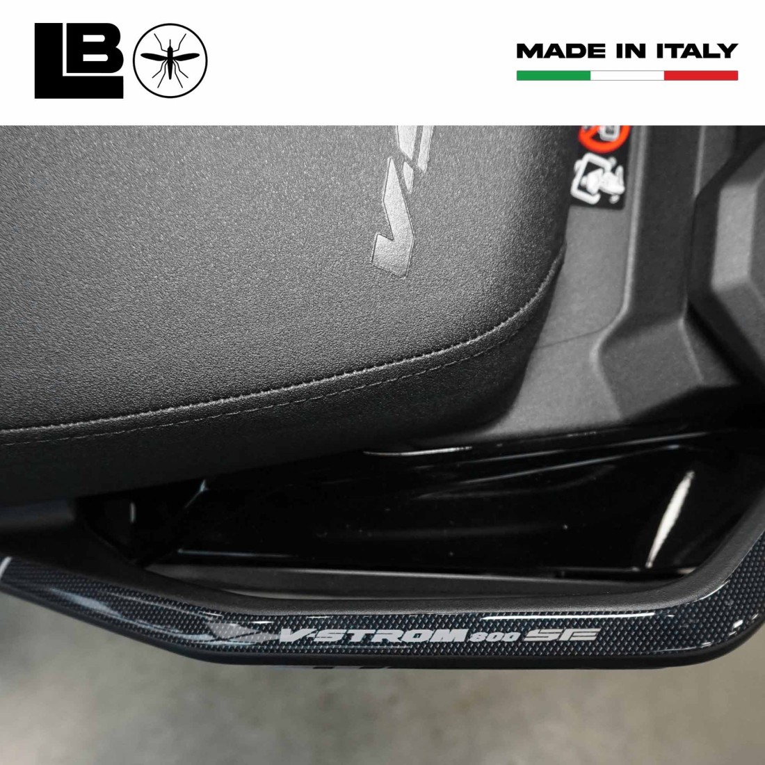 Protezione adesiva con base in Simil Antiscivolo e scritta V-strom 800 SE in grigio. Adesivi in resina gel 3D, Esclusivi Labelbike® MADE IN ITALY. Realizzati per decorare e proteggere le maniglie moto Suzuki V-Strom 800 SE modello dal 2023.