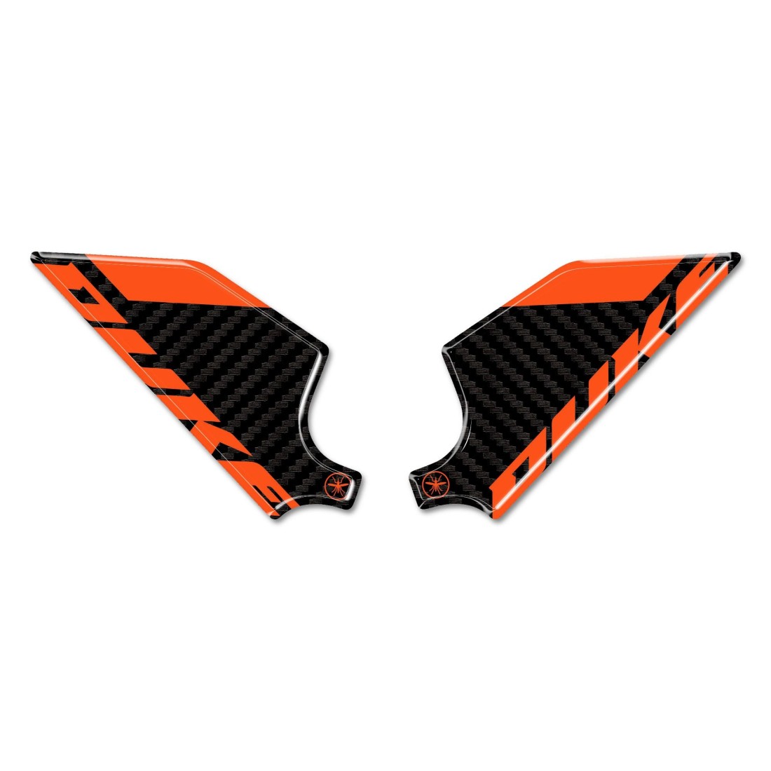Protezioni adesive resinate per battitacco moto KTM 990 Duke 2024 - 2025. Due adesivi per battitacco moto lato destro e sinistro in resina gel 3D Esclusivi - Labelbike. Adesivi per poggiapiedi laterali moto MADE IN ITALY realizzati in resina con effetto 3D. Resistono a lavaggi, intemperie ed ai Raggi U.V.