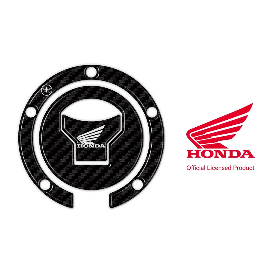 Protezione resinata effetto 3D per Tappo Serbatoio HONDA. Ripara da Urti e Graffi il serbatoio della tua moto, resiste alle intemperie ai lavaggi ed ai Raggi U.V. Adesivo moto compatibile con tappi benzina a 5 fori moto Honda. Controlla e verifica la forma del tuo tappo serbatoio.