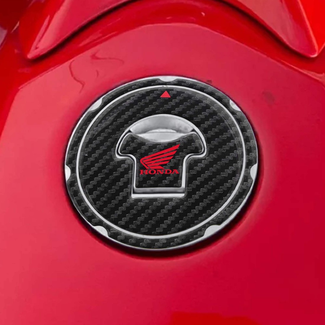 Protezione resinata effetto 3D per tappo Serbatoio HONDA. Ripara da Urti e Graffi il serbatoio della tua moto, resiste alle intemperie ai lavaggi ed ai Raggi U.V. Adesivo moto compatibile con tappi benzina senza fori moto Honda. Controlla e verifica la forma del tuo tappo serbatoio.