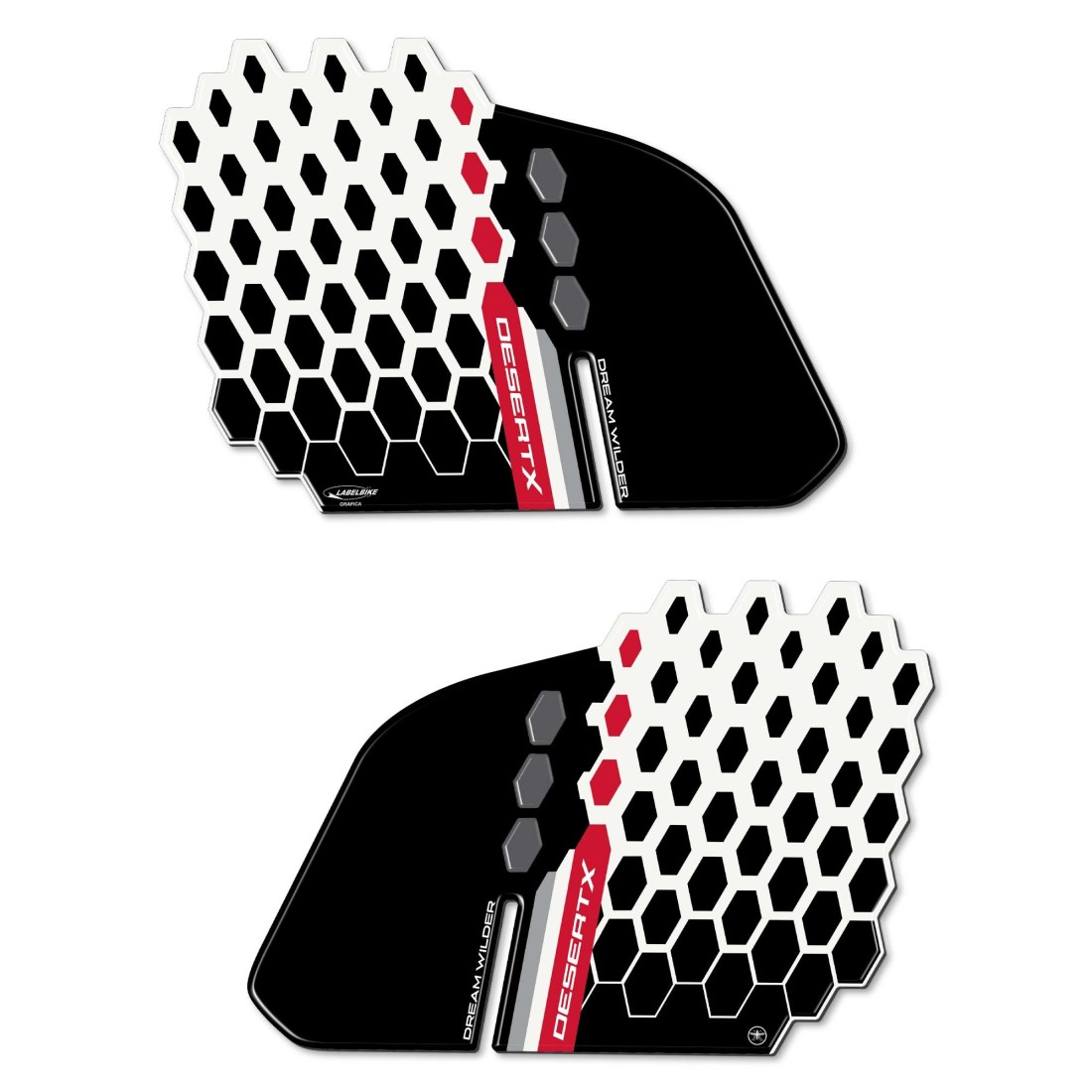 Adesivi moto protezioni adesive per serbatoio moto realizzati in resina con effetto 3D. Protezioni adesive resinate con grafica dedicata alla colorazione Ducati DesertX 2022-2025