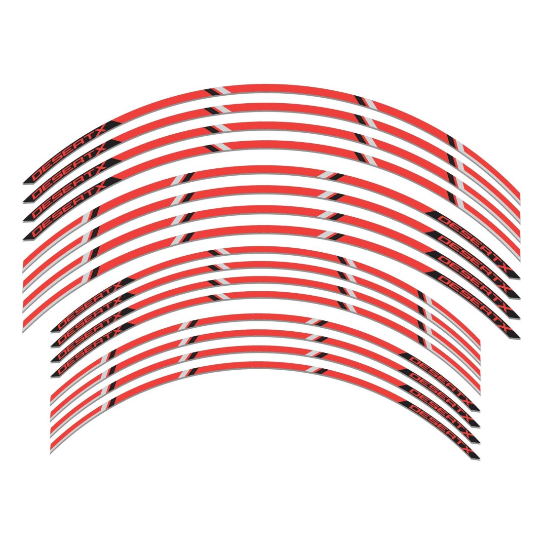 Kit di strisce adesive per bordi dei cerchi 21" e 18" compatibili con moto Ducati DesertX nuova colorazione RR22 2023. Adesivi precurvati per profili cerchi ruote moto ideali per decorare e rendere unica la tua Desertx!