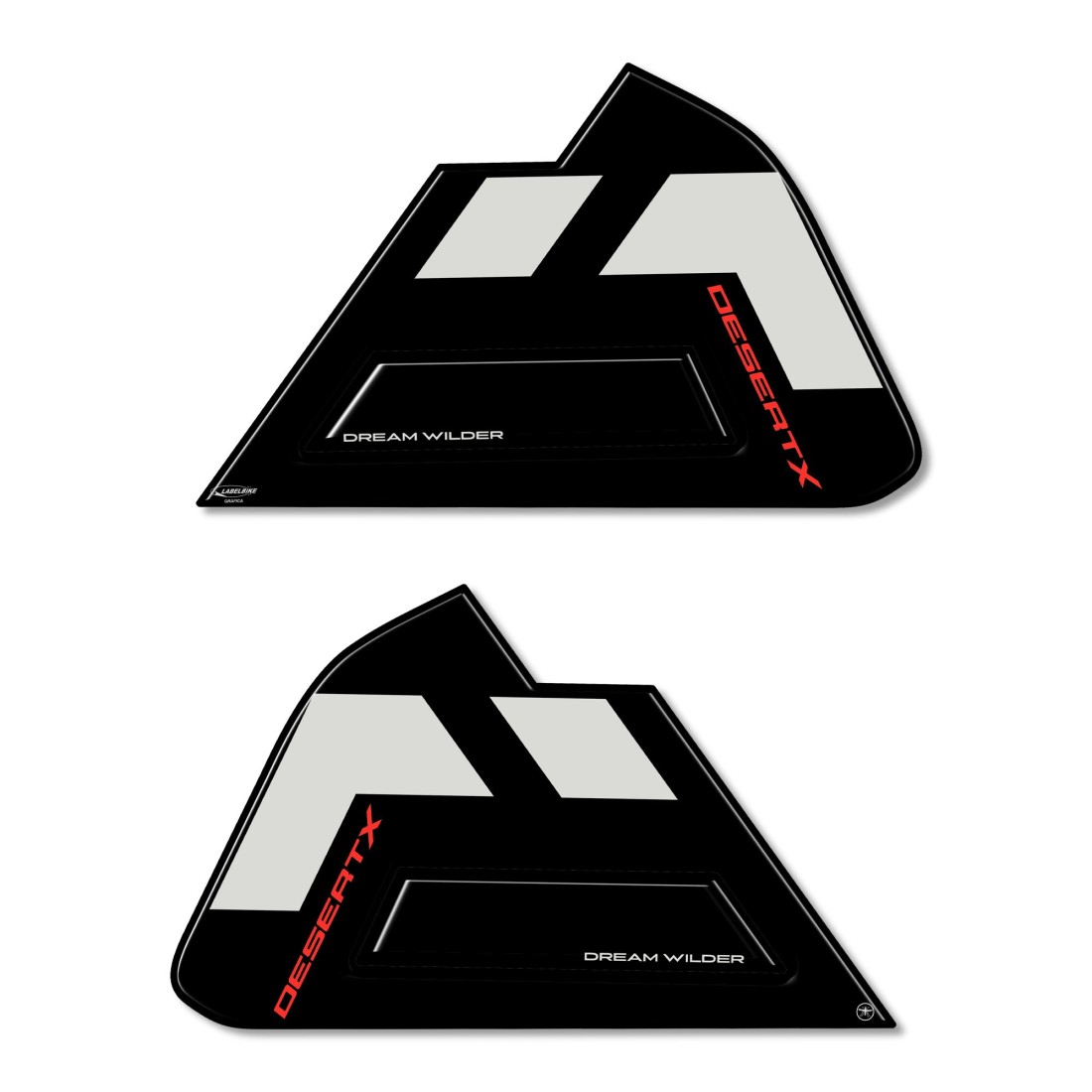 Adesivi moto protezioni adesive per serbatoio moto realizzati in resina con effetto 3D. Protezioni adesive resinate con grafica dedicata alla nuova colorazione Ducati DesertX RR22 2023.