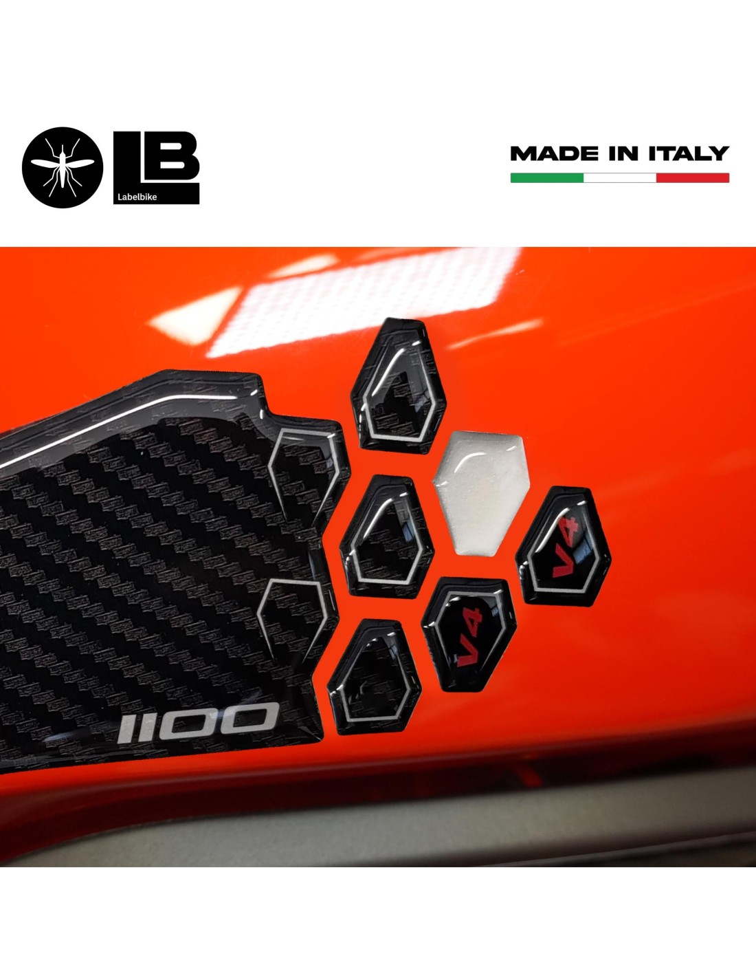 Adesivi Made in Italy, Esclusivi Labelbike, realizzati in resina con Carbon Look (simil carbonio) e scritta 1100 V4.