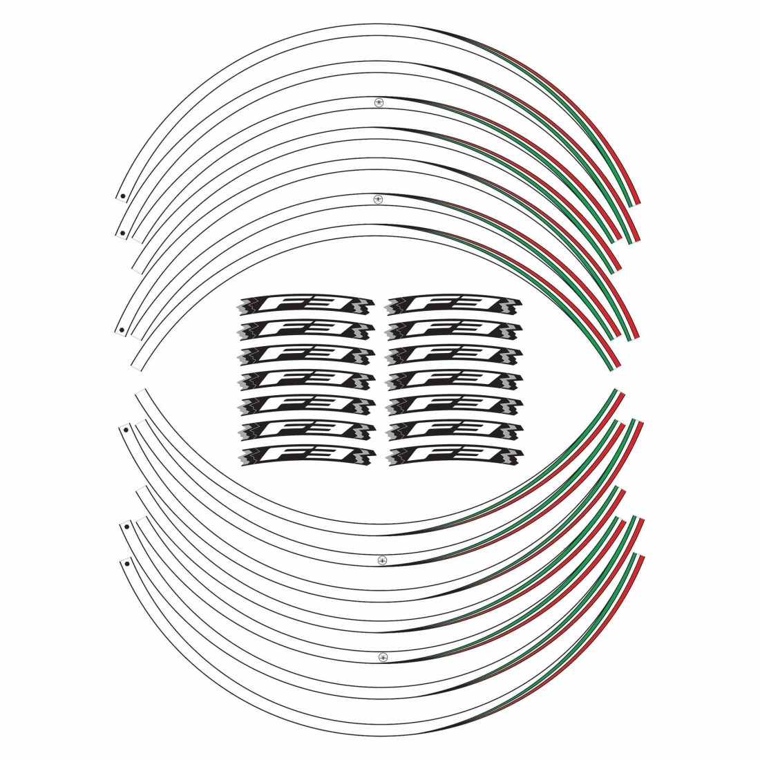 Adesivi per profilo ruote moto Mv Agusta F3, ruote da 17 pollici. Kit di strisce adesive Esclusivi - Labelbike®. Adesivi ruote moto MADE IN ITALY. Grafiche con base in colorazione Bianco, Nero, Verde o Rosso con dettagli bandiera tricolore Italia e scritte F3. Decorano e migliorano l'estetica della tua Mv Agusta F3, resistono a lavaggi, intemperie ed ai Raggi U.V.