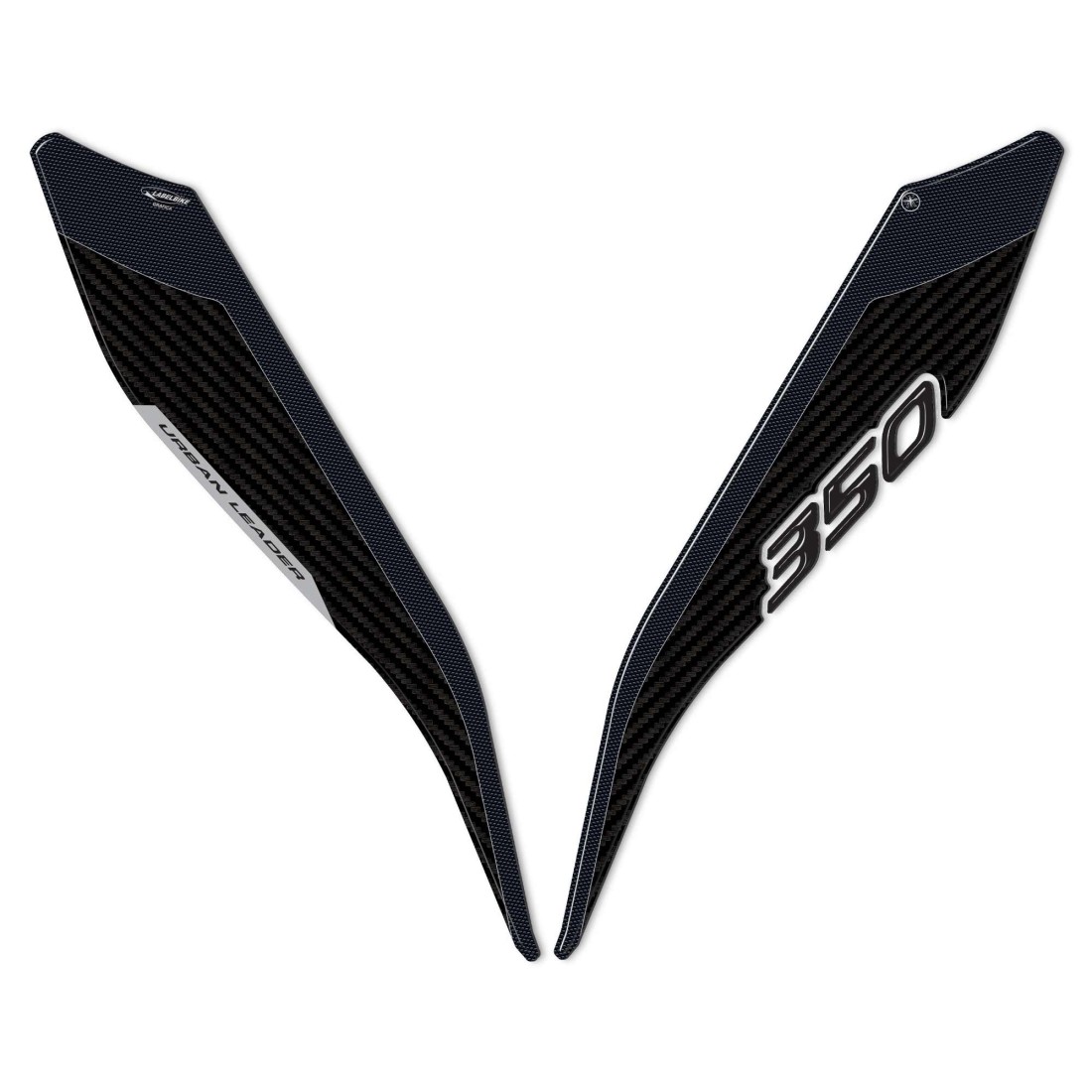 Protezione adesiva 3D compatibile con Maxi Scooter Honda Forza 350 2021-2025. Kit di adesivi resinati per proteggere e decorare il tuo Forza 350. Protezioni adesive Made in Italy, Esclusive Labelbike® per frontale Forza 350, realizzate in resina con grafica in simil carbonio e scritta Urban Leader e 350.