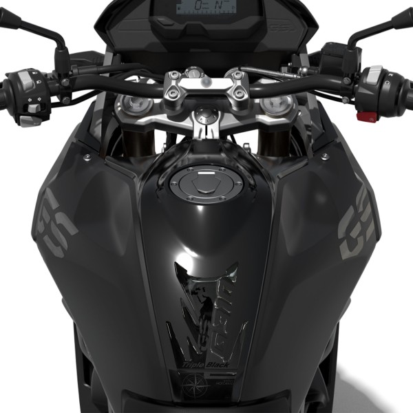 Paraserbatoio Made in Italy, Esclusivo Labelbike, realizzato in resina con colorazione Triple Black. I nostri adesivi decorano e rendono unica la tua G 310 GS, riparano da Urti e Graffi e resistono alle Intemperie ed ai Raggi U.V.