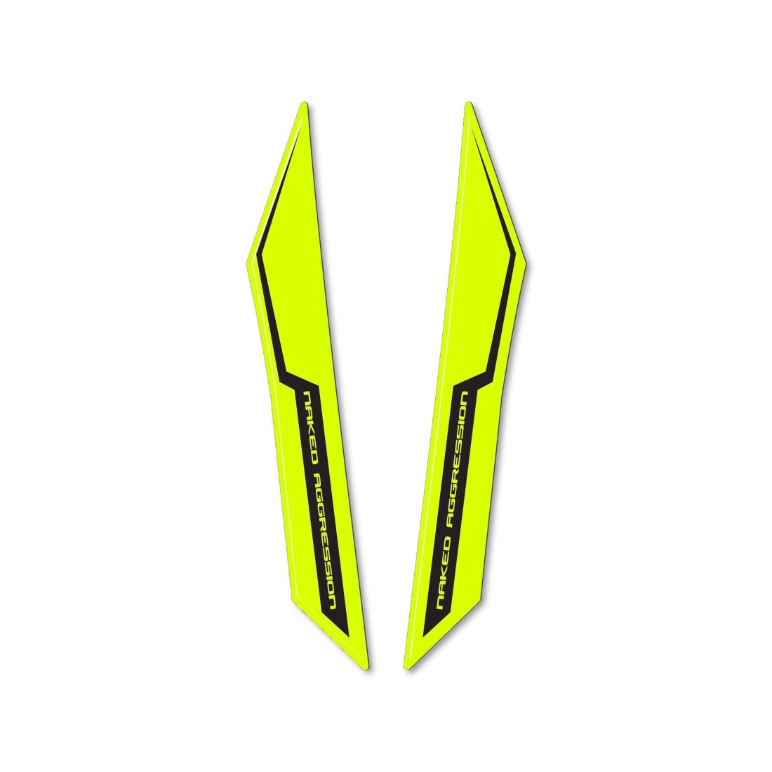 Protezioni adesive 3D compatibili con Suzuki GSX-S1000 2021-2023. Adesivo resinato per moto ideale per proteggere e decorare il parafango anteriore della tua Suzuki GSX S 2021-23. Adesivi in giallo Fluo con effetto 3D, superficie lucida e scritta Naked Aggression.
