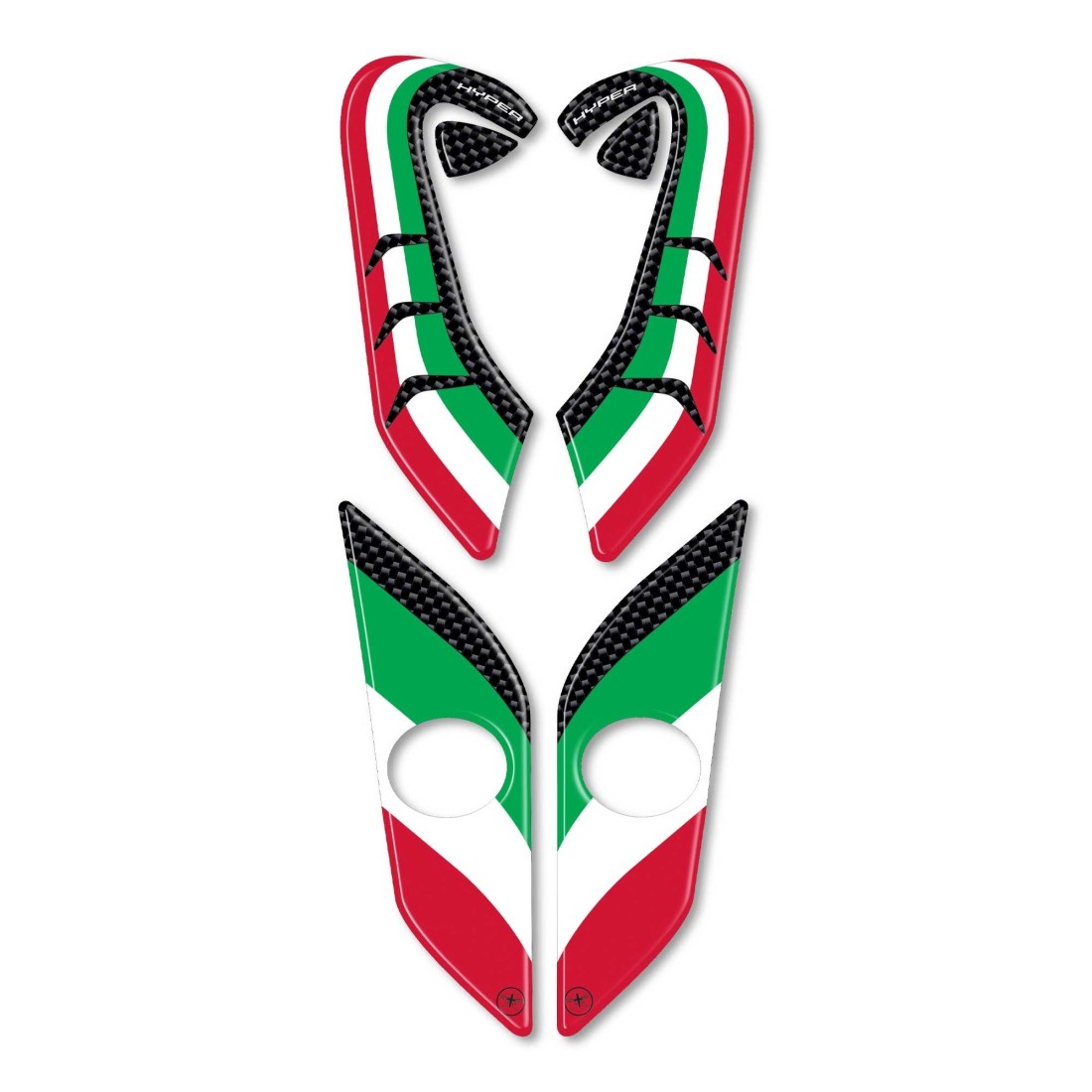 Coppia di adesivi resinati protezioni parasteli e deflettori moto. Grafica con colorazione tricolore Italia, effetto 3D.