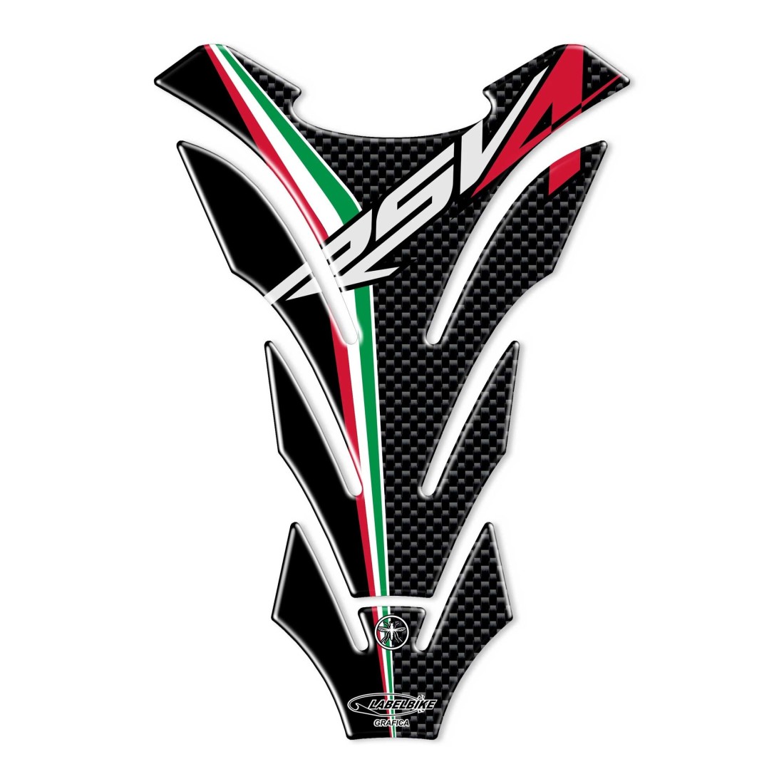 Protezione adesiva resinata per serbatoio moto Aprilia RSV4. Dimensione: 14 x 20 cm, Esclusivo - Labelbike. Adesivo per serbatoio MADE IN ITALY realizzato in resina con effetto 3D. Grafica in Simil Carbonio con scritta RSV4 e Tricolore ITALIA. Ripara da Urti e Graffi il serbatoio della tua moto, resiste alle Intemperie e ai Raggi U.V.