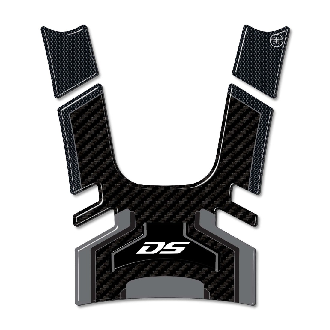 Adesivo Paraserbatoio moto MADE IN ITALY realizzato in resina Gel con effetto 3D. Grafica in Carbon Look (effetto carbonio) con variatte colore in Nero o Rosso.