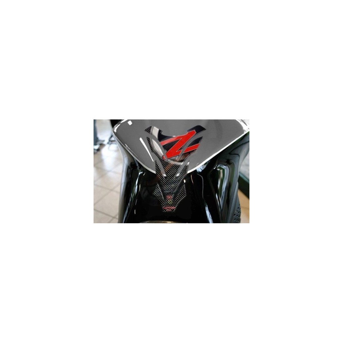 Kit 3 pezzi adesivi / stickers per moto Kawasaki Z750-Z1000 2007 in poi. Grafiche in Nero Rosso. Protezioni adesive resinate 3D per Serbatoio, Tappo carburante e Piastra forcella sterzo.