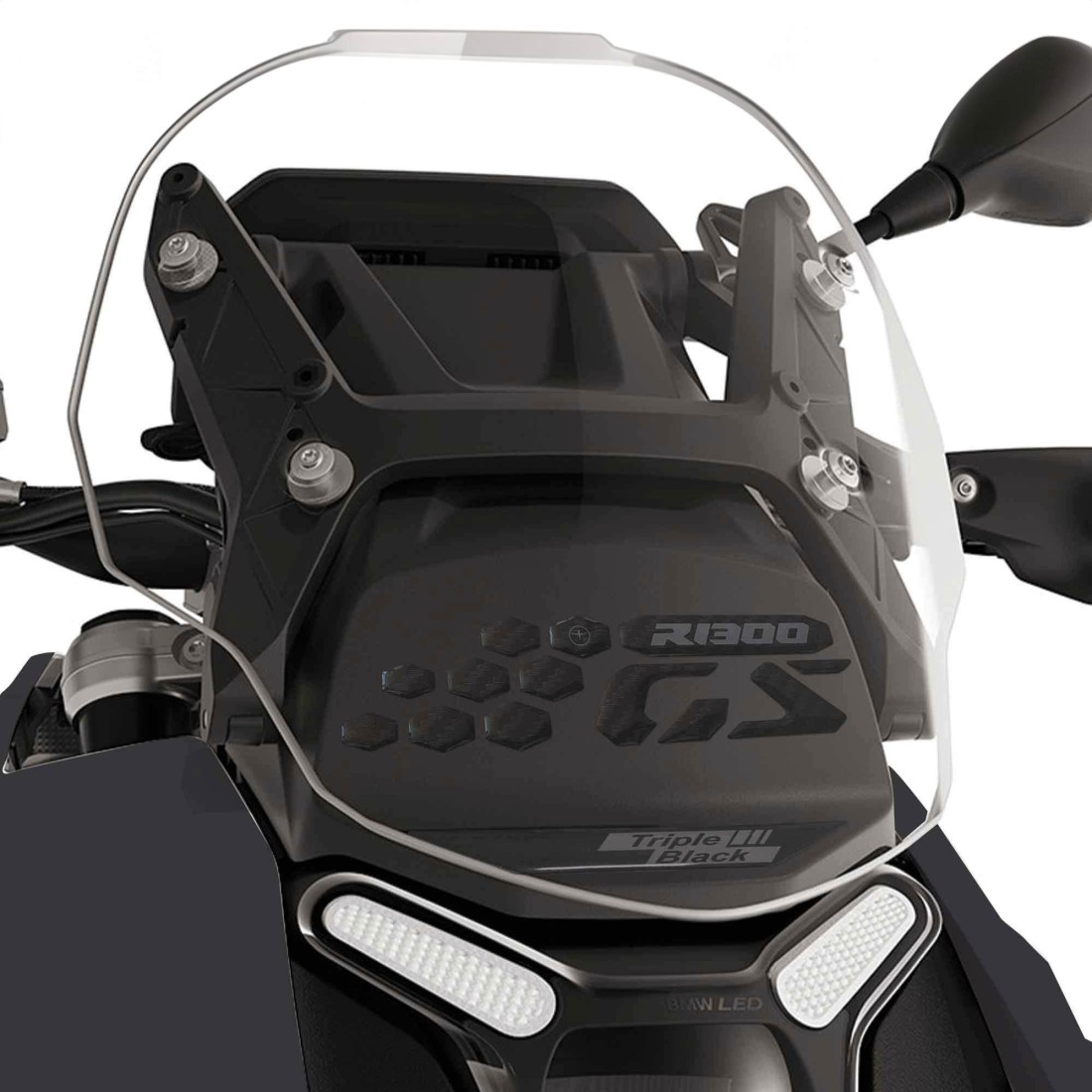 Adesivi in resina gel 3D compatibili con le colorazioni (Triple Black, Light White e Trophy) di moto BMW R 1300 GS dal 2023 al 2025. Grafiche adesive dedicate a tre diverse colorazioni: