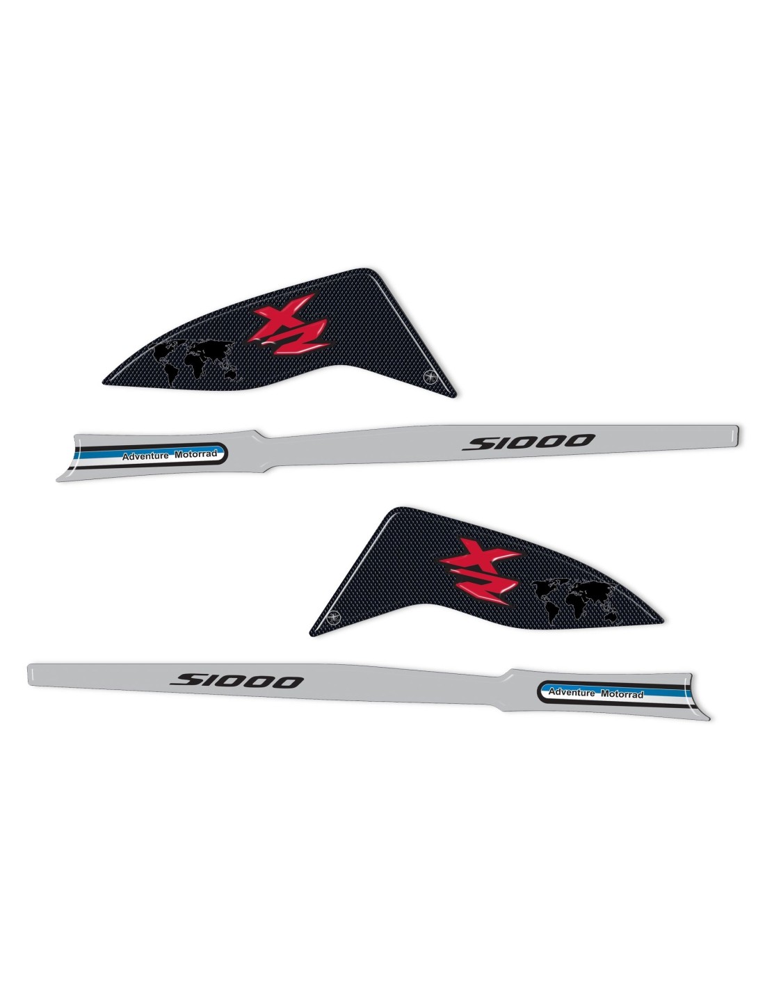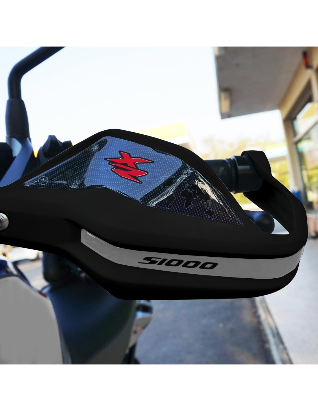 Protezioni adesive resinate per paramani moto BMW S1000 XR 2017 - 2023. Adesivi in resina gel 3D Esclusivi - Labelbike®. Adesivi proteggi paramani MADE IN ITALY realizzati in resina con effetto 3D. Grafica con base Carbon Look (effetto carbonio) e scritta S1000. Effetto rilievo doppio 3D sulla scritta XR (disponibile in tre colorazioni: Rosso-Grigio, Grigio-Grigio, Grigio-Rosso).