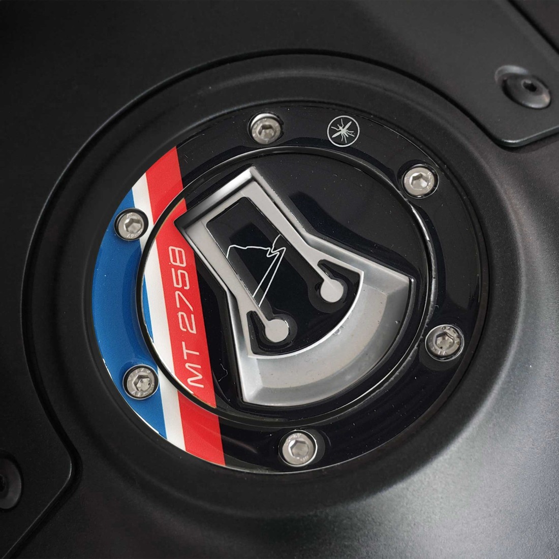 Protezioni 3D per zona tappo rifornimento carburante compatibili con Moto Guzzi Stelvio Duecento Tributo 2025. Adesivo resinato per proteggere e decorare il tappo serbatoio della tua moto.
