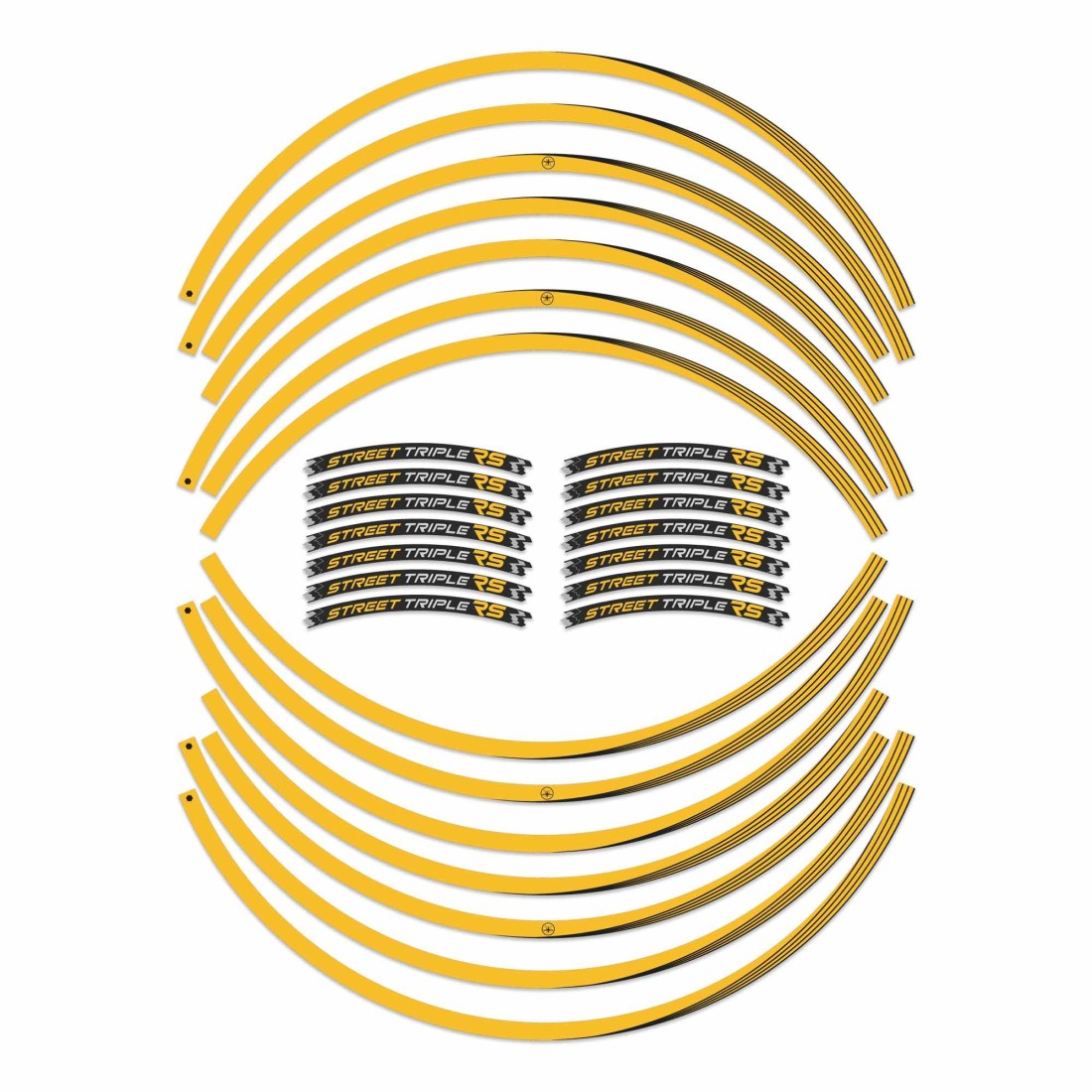 Kit di strisce adesive per bordi dei cerchi 17" compatibili con moto Triumph Street Triple 765 RS. Adesivi precurvati per profili cerchi ruote moto ideali per decorare e rendere unica la tua Street Triple 765 RS.
