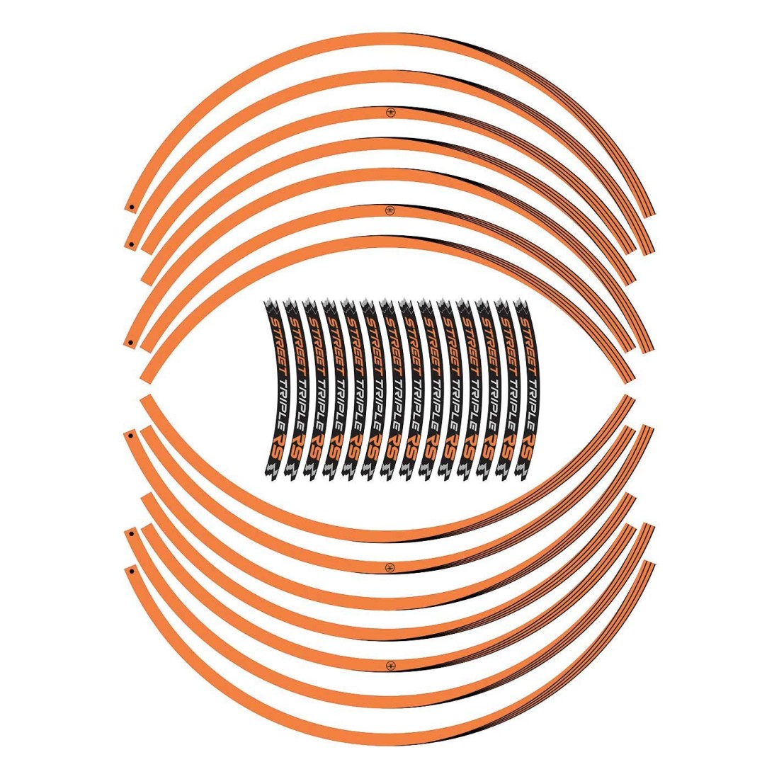 Kit di strisce adesive per bordi dei cerchi 17" compatibili con moto Triumph Street Triple 765 RS. Adesivi precurvati per profili cerchi ruote moto ideali per decorare e rendere unica la tua Street Triple 765 RS.