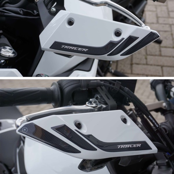 Protezioni adesive resinate per para mani Yamaha Tracer 700 MT-07 2016-2019. Due adesivi in resina gel 3D Esclusivi - Labelbike®. Adesivi paramani MADE IN ITALY realizzati in resina con effetto 3D. Grafica in Simil Carbonio con scritta Tracer.