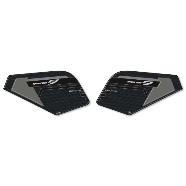 Protezioni adesive resinate per zona laterale serbatoio moto Yamaha Tracer 9 dal 2021. Due adesivi in resina gel 3D Esclusivi - Labelbike. Adesivi laterali per serbatoio MADE IN ITALY realizzati in resina con effetto 3D. Grafiche in colorazione Grigio, Blu o Rosso con base Carbon Look e scritte Tracer 9 Roads of Life.