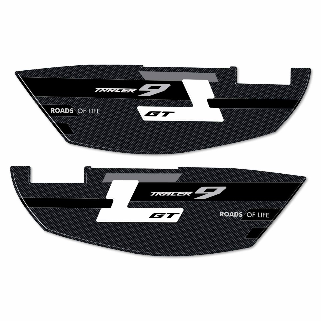 Protezioni adesive resinate per borse moto Yamaha Tracer 9 GT 2021 - 2024. Due adesivi per valigia moto lato destro e sinistro in resina gel 3D Esclusivi - Labelbike. Adesivi per borse laterali moto MADE IN ITALY realizzati in resina con effetto 3D. Grafiche in 5 colorazioni per i modelli Tracer 9 GT dal 2021. Varianti colore in Bianco o Nero, Grigio, Oro o Rosso con base adesivo in Carbon Look e scritte Tracer 9 GT Roads of Life.