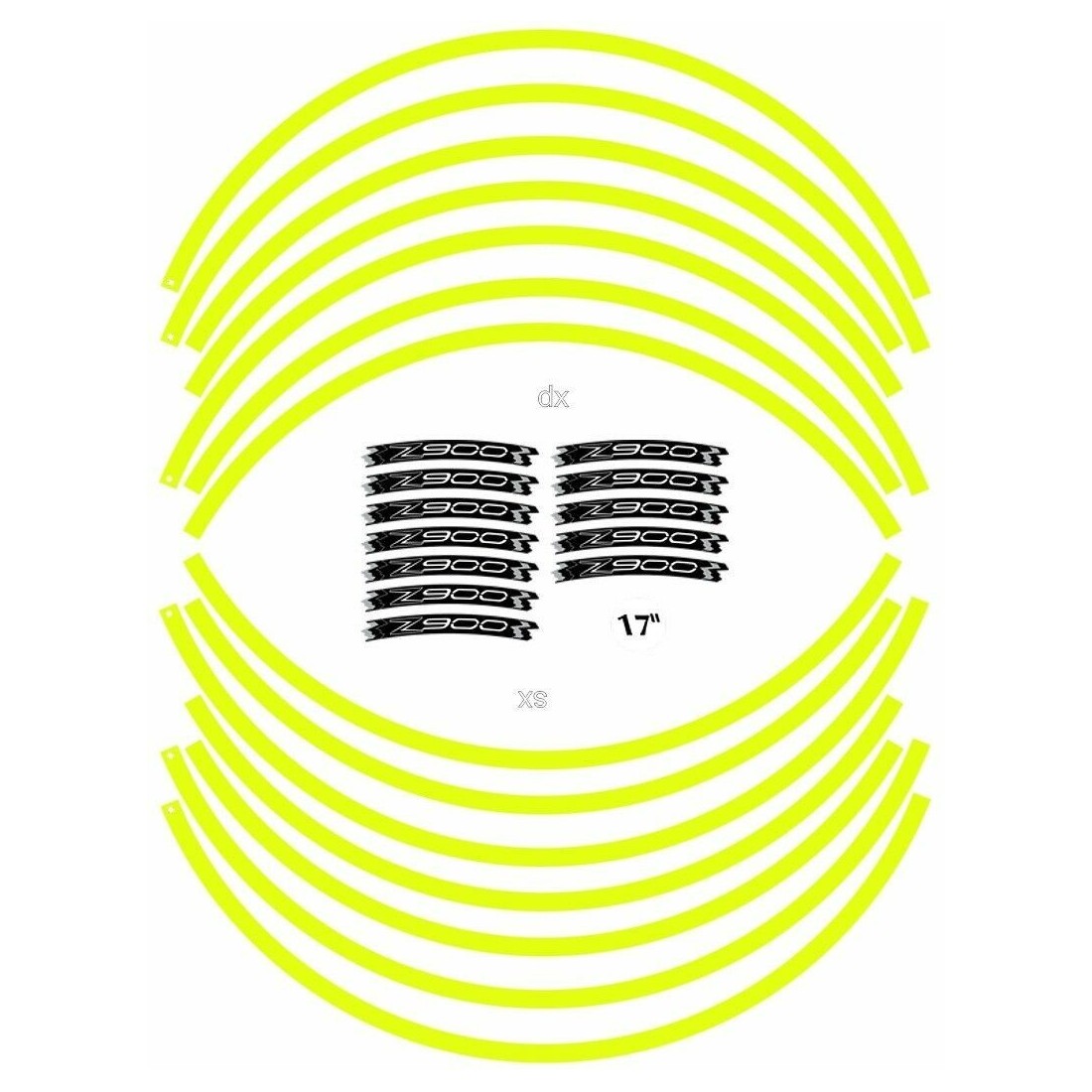 - KIT Adesivi / Stickers Strisce per Cerchi 17" compatibili per Moto Kawasaki Z900 - Giallo Fluo