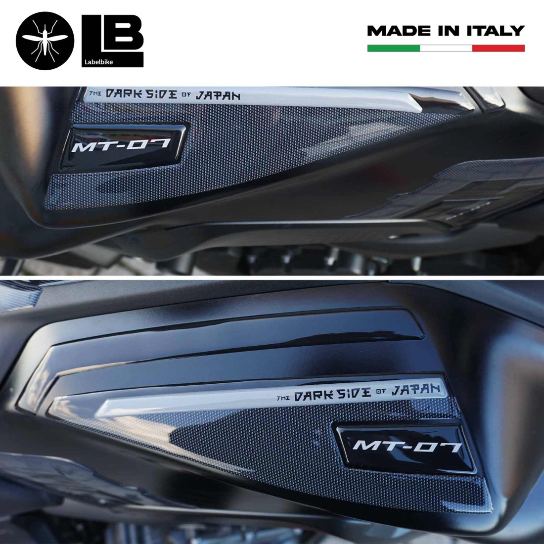 Protezioni adesive resinate per fasce superiori del serbatoio moto Yamaha Mt07 2021 - 2023. Coppia di adesivi in resina gel 3D Esclusivi - Labelbike®. Adesivi proteggi serbatoio moto ideali per Yamaha Mt07 (dal 2021).