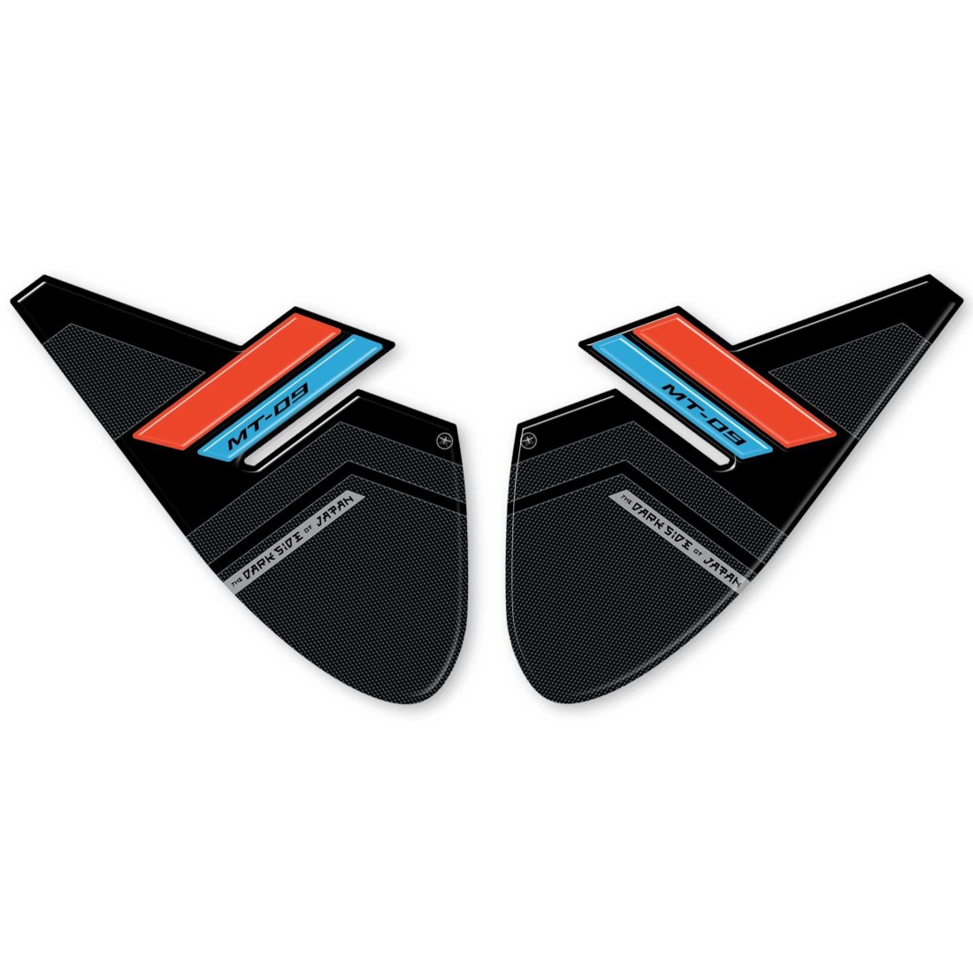 Coppia di adesivi (per Mt-09 in Blu, Grigio o Arancio-Azzurro e per versione MT-09 SP in Grigio-Azzurro) realizzati in resina 3D compatibili con serbatoio moto Yamaha Mt-09 Mt09 SP 2021