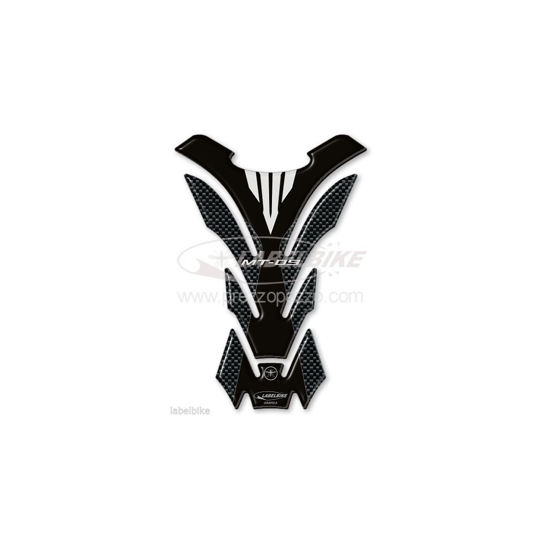 Protezione adesiva resinata per serbatoio moto Yamaha Mt-09 Mt09. Esclusivo Labelbike. Adesivo per serbatoio MADE IN ITALY realizzato in resina con effetto 3D. Grafica in Simil Carbonio con finiture Nere e scritta MT-09. Adesivo proteggi serbatoio in gel 3D, universale per tutte le colorazioni moto Mt-09 fino al modello del 2020.