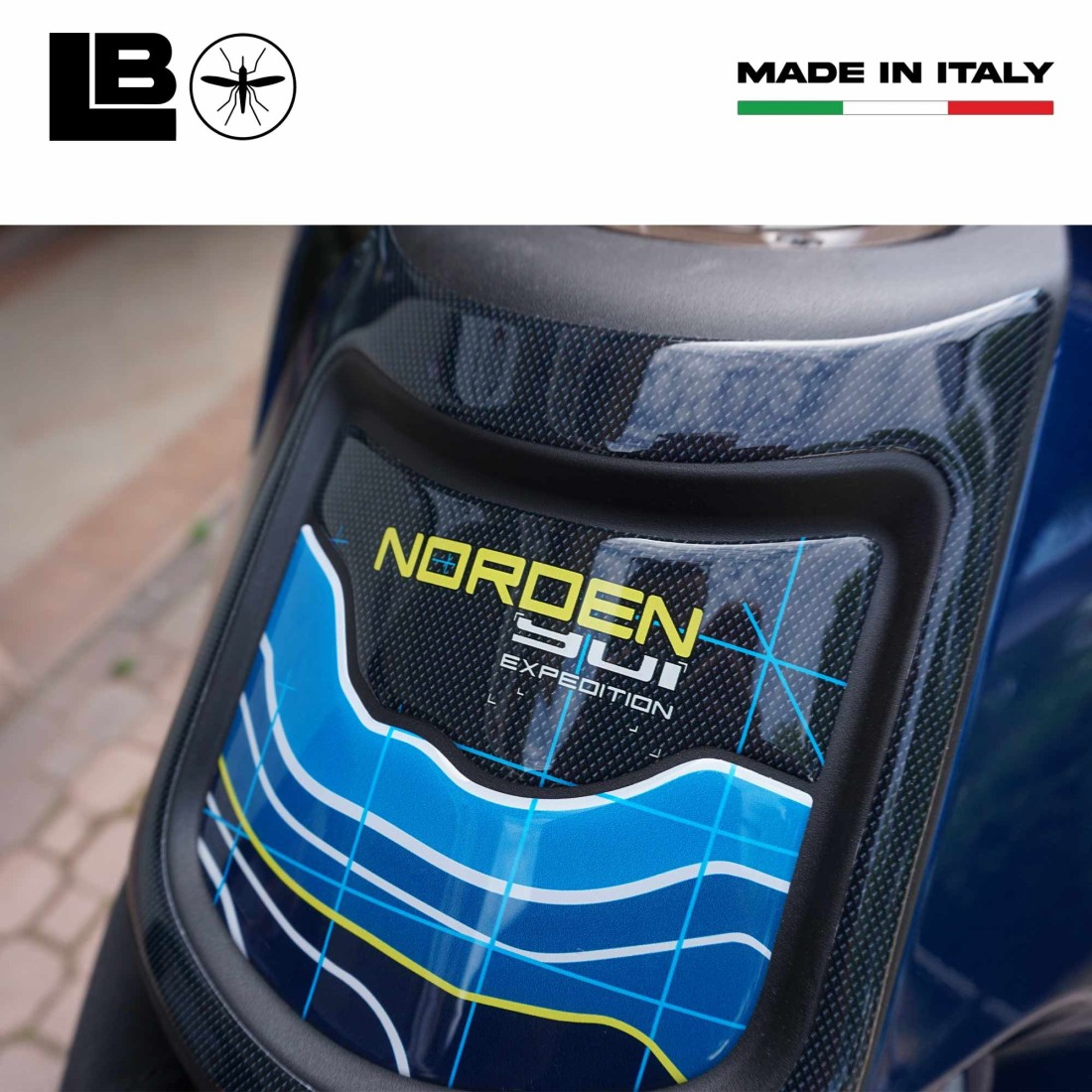 Adesivo resinato per proteggere e decorare il serbatoio della tua Husqvarna Norden 901. Grafiche adesive per moto resinate effetto 3D, superficie lucida, per zona serbatoio moto Husqvarna Norden 901 Expedition dal 2023.