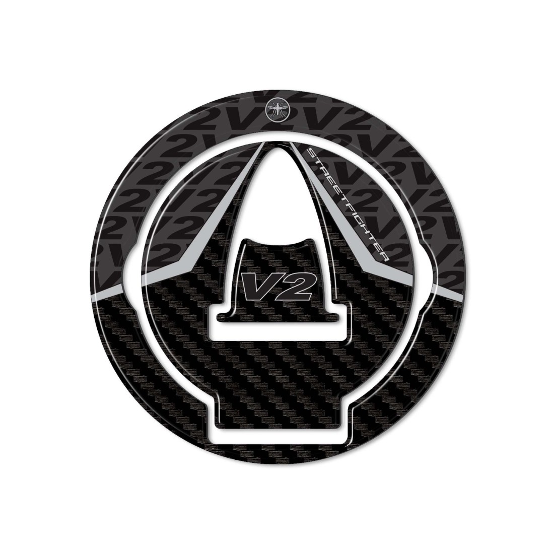 Adesivo moto MADE IN ITALY realizzato in resina con effetto 3D. Grafica in Carbon Look (effetto carbonio) con scritte V2 Streetfighter.