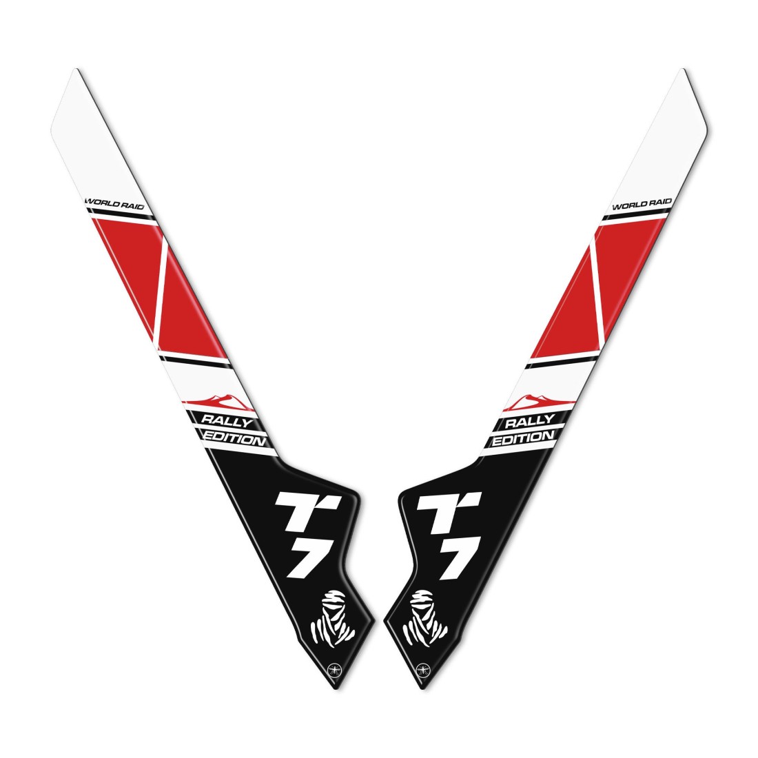 Protezioni adesive resinate laterali per parafango moto Tenere 700 Rally Edition 2022. Due adesivi in resina gel 3D Esclusivi - Labelbike. Adesivi laterali protezioni per parafango anteriore MADE IN ITALY realizzati in resina con effetto 3D. Grafica in Look Antiscivolo con scritta RALLY EDITION. Decorano e Riparano da Urti e Graffi i para-steli del parafango della tua moto, resistono a lavaggi, intemperie ed ai Raggi U.V.