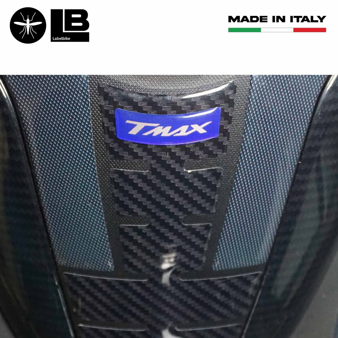 Protezione Adesiva per zona centrale Tunnel Tmax 2022 - 2025 e versione Tech Max. Grafica con base in Simil Antiscivolo ed effetto carbonio con scritta Tmax in 6 colorazioni differenti. Adesivi resinati effetto 3D, Esclusivi Labelbike MADE IN ITALY.