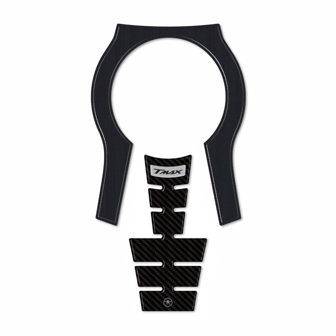 Protezione Adesiva per zona centrale Tunnel Tmax 2022 - 2025 e versione Tech Max. Grafica con base in Simil Antiscivolo ed effetto carbonio con scritta Tmax in 6 colorazioni differenti. Adesivi resinati effetto 3D, Esclusivi Labelbike MADE IN ITALY.