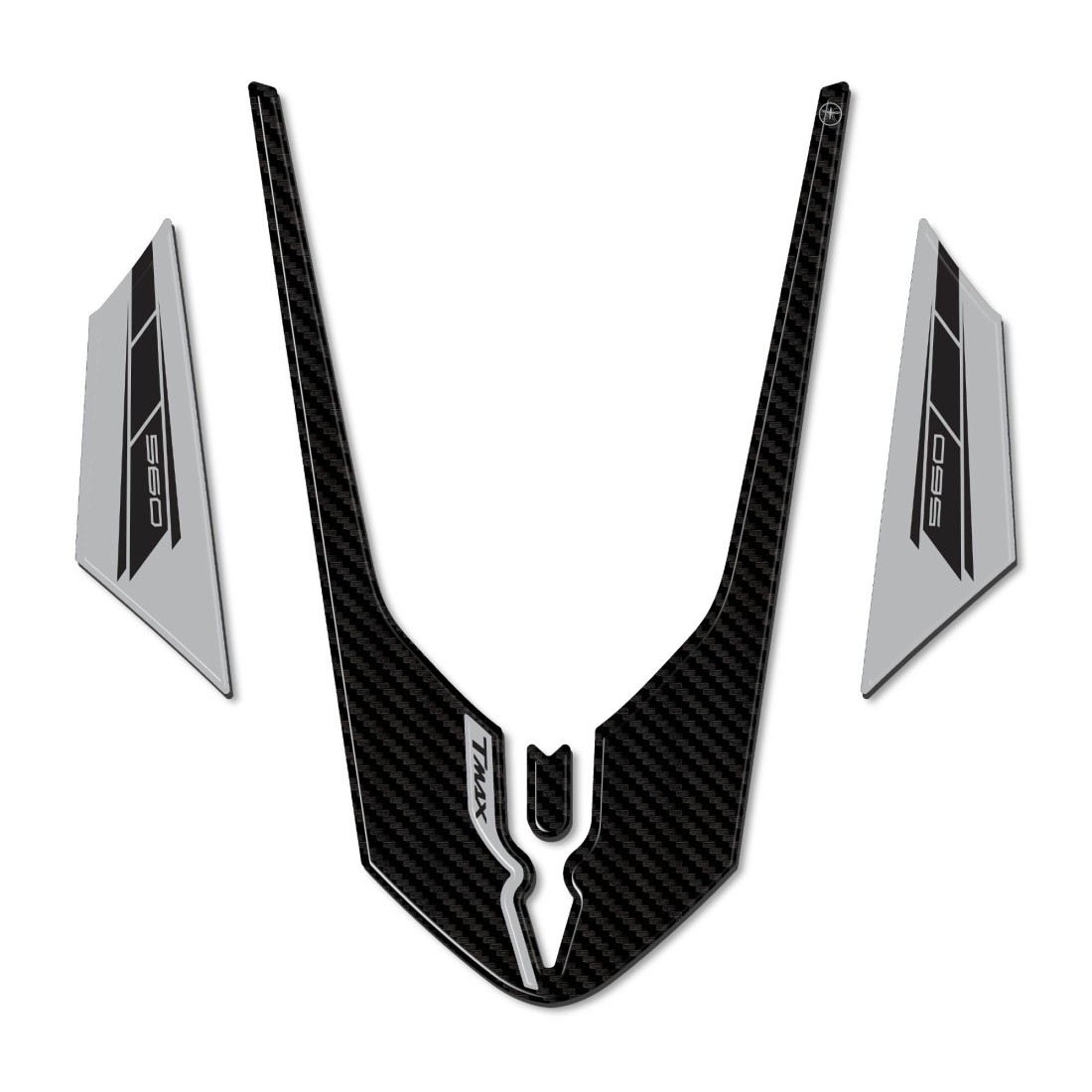 Protezione Adesiva per parafango scooter Tmax 2022 - 2025 e versione Tech Max. Grafica base effetto carbonio con scritta Tmax 560 e 6 varianti di colore. Adesivi resinati effetto 3D, Esclusivi Labelbike MADE IN ITALY.