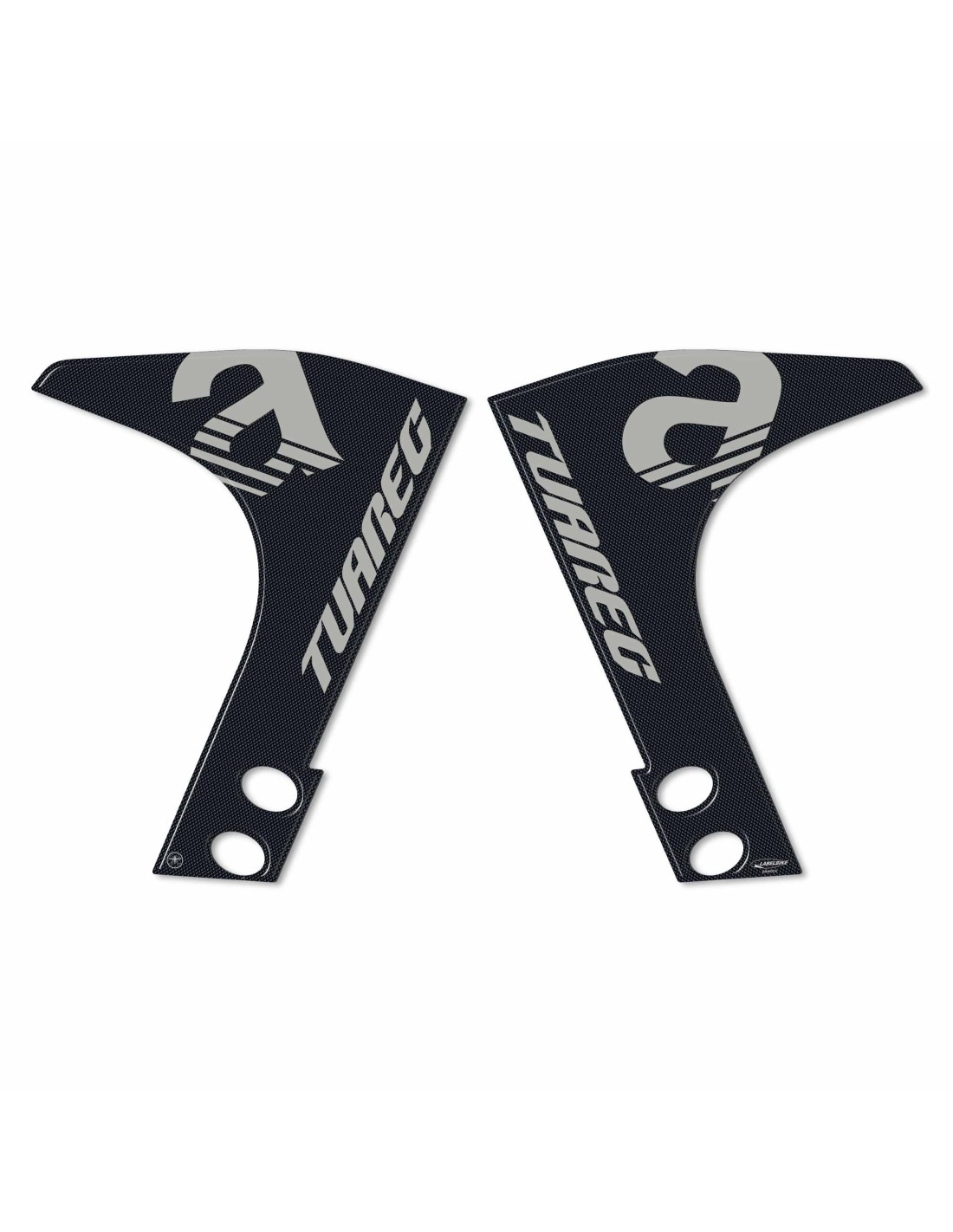 Protezioni adesive resinate laterali per parafango moto Aprilia Tuareg 660 2022-23. Due adesivi in resina gel 3D Esclusivi - Labelbike. Adesivi laterali protezioni per parafango anteriore MADE IN ITALY realizzati in resina con effetto 3D. Grafica in Look Antiscivolo con scritta Tuareg. Decorano e Riparano da Urti e Graffi i para-steli del parafango della tua Tuareg 660 2022-25, resistono a lavaggi, intemperie ed ai Raggi U.V.