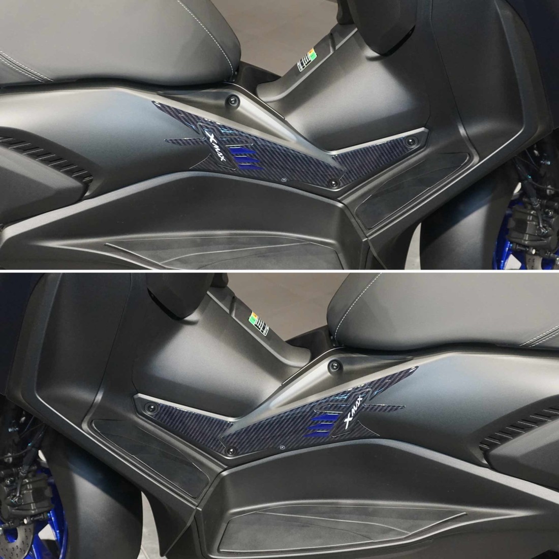 Coppia di adesivi per lato destro e sinistro zona laterale sottosella boomerang scooter. Adesivi resinati protezione scooter X Max modelli dal 2023 125 e 300. Protegge la parte laterale dai graffi e trasforma il design del tuo Yamaha X-Max 300 o 125 rendendolo unico e spettacolare.