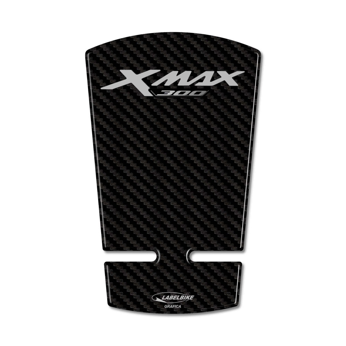 Protezione Adesiva per zona centrale sportello serbatoio. Grafica con base in Simil Carbonio con scritta Grigia Xmax e varianti colore in blu, nero o oro per la scritta 300. Adesivi resinati effetto 3D, Esclusivi Labelbike® MADE IN ITALY.